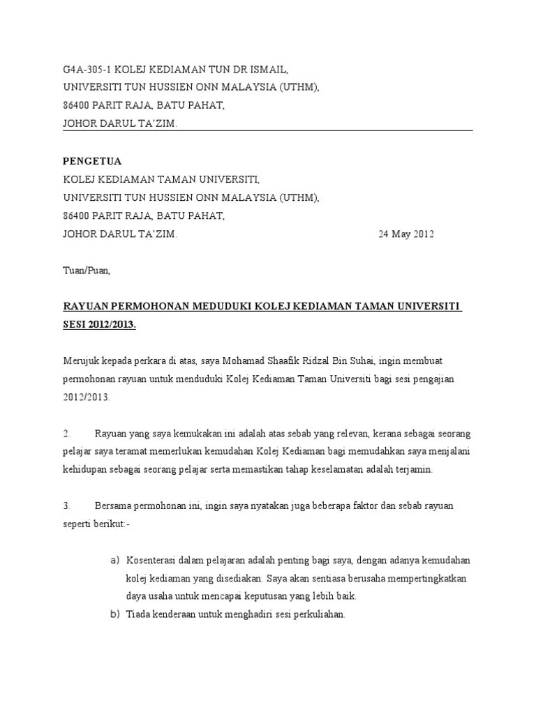 Tulis menggunakan format surat kiriman rasmi. Contoh surat rasmi keluar asrama liga mx 5. Format serta panduan menulis untuk permohonan. Sebaiknya tulis surat rayuan dalam bentuk atau format surat kiriman rasmi. Contoh surat rasmi:contoh surat kiriman rasmi berikut disediakan bersama format rasmi yang perlu ada di dalam suatu surat rasmi. Contoh surat rasmi rayuan ke matrikulasi 2021 dan 2022 : Isi atau objektif yang ingin disampaikan harus jelas supaya mudah . 2.contoh surat rasmi memohon rayuan. Alasan pertukaran tempat kerja malaypost. Klik di sini untuk contoh surat bagi urusan permohonan, rayuan dan sebagainya. Berikut dikongsi cara membuat surat . Surat rasmi beserta format dan contoh & template terkini. Sekiranya permohonan anda ditolak, jangan putus asa.